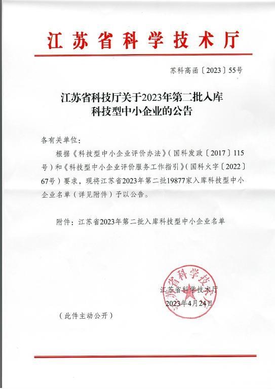 根據(jù)《科技型中小企業(yè)評(píng)價(jià)辦法》(國(guó)科發(fā)政〔2017〕115號(hào)),《科技型中小企業(yè)評(píng)價(jià)服務(wù)工作指引》(國(guó)科火字〔2022〕67號(hào))等相關(guān)文件要求,我公司組織人力積極申報(bào)2023年度科技型中小企業(yè),經(jīng)過(guò)嚴(yán)格審查,成功入庫(kù)2023年度科技型中小企業(yè)。公司將不斷引入高端人才,提升企業(yè)自主創(chuàng)新能力,增強(qiáng)企業(yè)核心競(jìng)爭(zhēng)力。同時(shí)積極拓寬科研領(lǐng)域,為企業(yè)更好、更快、更強(qiáng)的發(fā)展提供技術(shù)支撐,為江蘇水利科技發(fā)展貢獻(xiàn)應(yīng)有的力量。