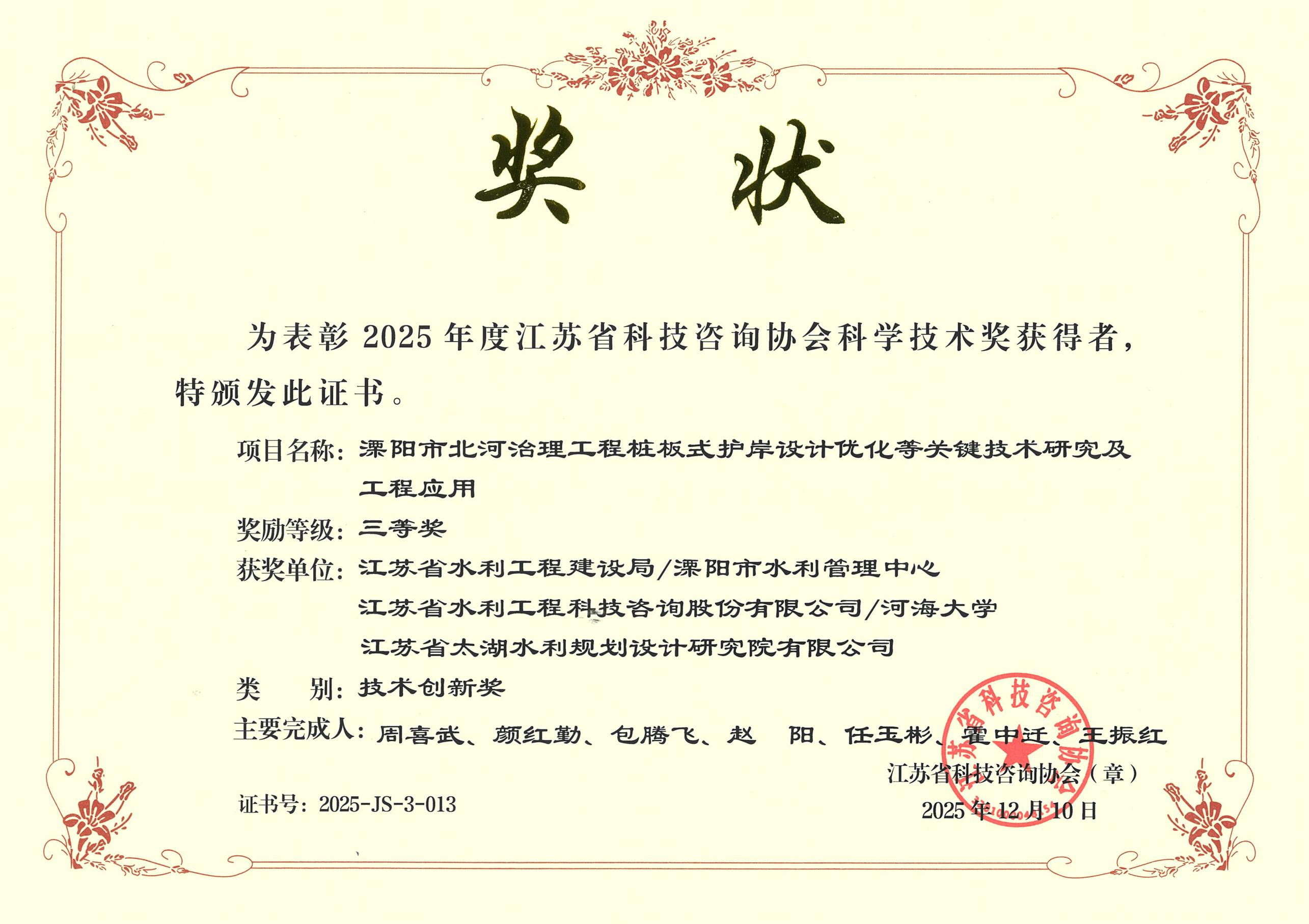 技術(shù)創(chuàng)新三等獎(jiǎng) 漂陽市北河治理工程樁板式護(hù)岸設(shè)計(jì)優(yōu)化等關(guān)鍵技術(shù)研究及工程應(yīng)用 三等獎(jiǎng)作者:admin 來源: 日期:2025-12-22 19:34:06 人氣: