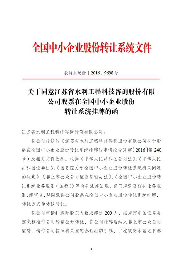 | 省水利咨詢公司于新三板掛牌上市作者:admin 來源: 日期:2017-1-3 17:09:44 人氣: