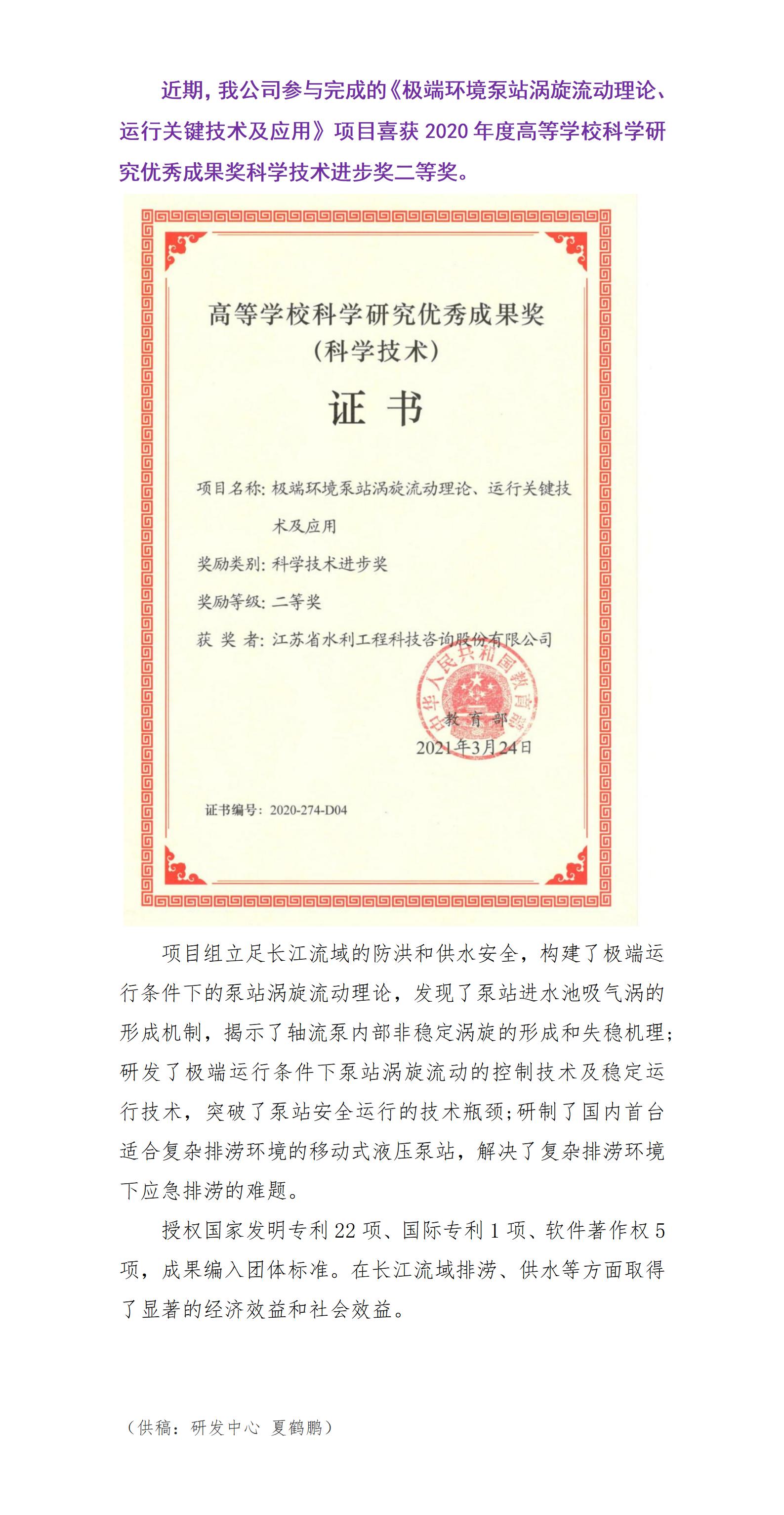 公司喜獲2020年度高等學(xué)校科學(xué)研究?jī)?yōu)秀成果獎(jiǎng)科學(xué)技術(shù)進(jìn)步獎(jiǎng)二等獎(jiǎng)