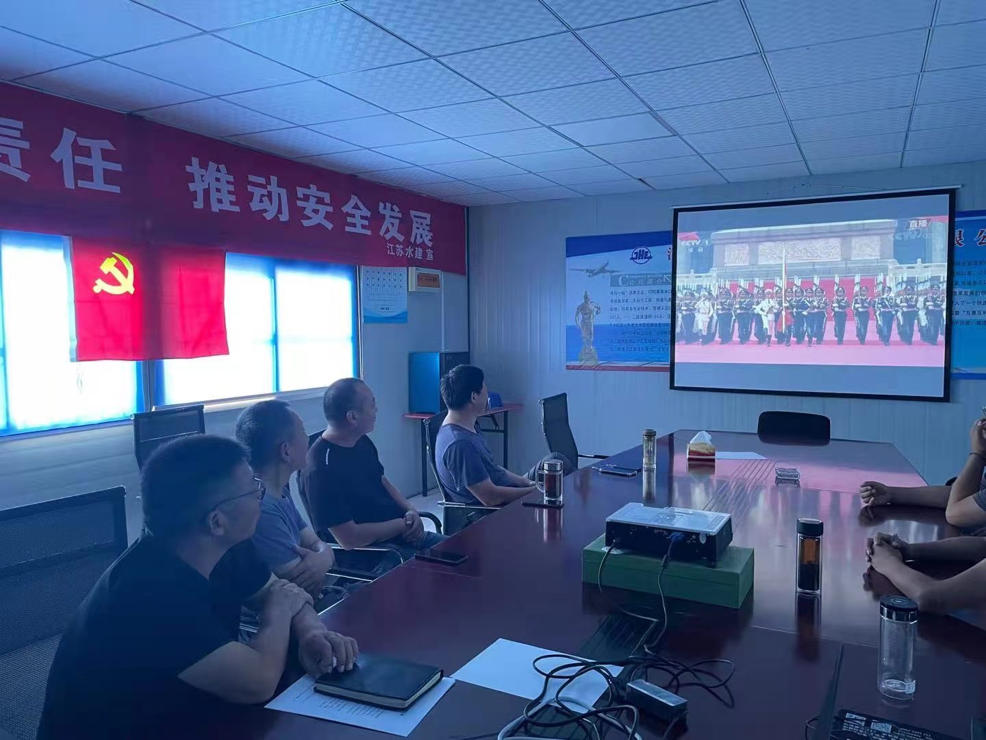 百年征程激蕩人心,百年艱辛蓽路藍縷,百年滄桑劈波斬浪,百年初心歷久彌堅。2021年7月1日,公司舉行慶祝中國共產(chǎn)黨成立100周年主題活動。 上午,公司黨支部組織經(jīng)營層、中層管理人員、全體在職黨員及入黨積極分子在5樓會議室集中收看“慶祝中國共產(chǎn)黨成立100周年大會”電視直播。大家認真觀看了慶祝大會全過程,聆聽、學(xué)習(xí)了習(xí)近平總書記的建黨100周年獻言,回顧中國共產(chǎn)黨百年奮斗的光輝歷程,展望中華民族偉大復(fù)興的光明前景。 侖山水庫代建項目組在工地同步組織收看慶祝大會。