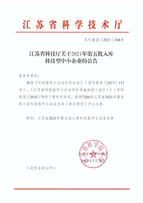根據(jù)《科技型中小企業(yè)評價辦法》(國科發(fā)政〔2017〕115號),《江蘇科技型中小企業(yè)評價實(shí)施細(xì)則(試行)》(蘇科政發(fā)〔2018〕75號)等相關(guān)文件要求,我公司組織人力積極申報(bào)2021年度科技型中小企業(yè),經(jīng)過嚴(yán)格審查,成功入庫2021年度科技型中小企業(yè)。公司將不斷引入高素質(zhì)人才,提升自主創(chuàng)新能力,保護(hù)自主知識產(chǎn)權(quán),增強(qiáng)企業(yè)核心競爭力。繼續(xù)加大科研投入,開拓企業(yè)創(chuàng)新發(fā)展領(lǐng)域,為企業(yè)更好、更快、更強(qiáng)的發(fā)展提供技術(shù)支撐,為江蘇水利科技發(fā)展貢獻(xiàn)應(yīng)有的力量。