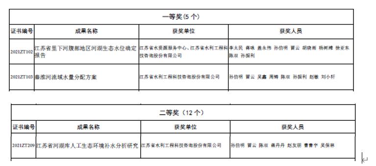 近日,“2021年度江蘇省優(yōu)秀水資源成果獎(jiǎng)”揭曉,我司成果豐碩。我司編制的《秦淮河流域水量分配方案》、《江蘇省河湖庫人工生態(tài)環(huán)境補(bǔ)水分析研究》分別榮獲一等獎(jiǎng)、二等獎(jiǎng),公司參與的《江蘇省里下河腹部地區(qū)河湖生態(tài)水位確定報(bào)告》獲一等獎(jiǎng)。
