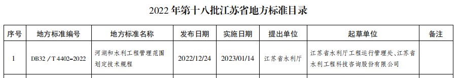 由我公司和江蘇省水利廳工程運行管理處合作編寫的《河湖和水利工程管理范圍劃定技術(shù)規(guī)程》正式發(fā)布。 江蘇省市場監(jiān)督管理局近期發(fā)布《江蘇省地方標(biāo)準(zhǔn)發(fā)布公告2022年第18號》,其中《河湖和水利工程管理范圍劃定技術(shù)規(guī)程》DB32/T 4402-2022(以下簡稱《規(guī)程》)正式發(fā)布。《規(guī)程》發(fā)布日期2022年12月24日,實施日期2023年1月14日。 《規(guī)程》主要內(nèi)容包括:范圍、規(guī)范性引用文件、術(shù)語和定義、一般要求、劃界、測繪、樁牌、數(shù)據(jù)處理、質(zhì)量檢測與評定、驗收10章和附錄。該《規(guī)程》的發(fā)布,對指導(dǎo)、規(guī)范今后河湖和水利工程管理范圍劃定工作的開展和落地具有重要指導(dǎo)意義,同時也是對現(xiàn)有行業(yè)標(biāo)準(zhǔn)的重要補充和創(chuàng)新拓展。  (供稿:設(shè)計分公司 徐玲玲 邱立波)